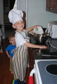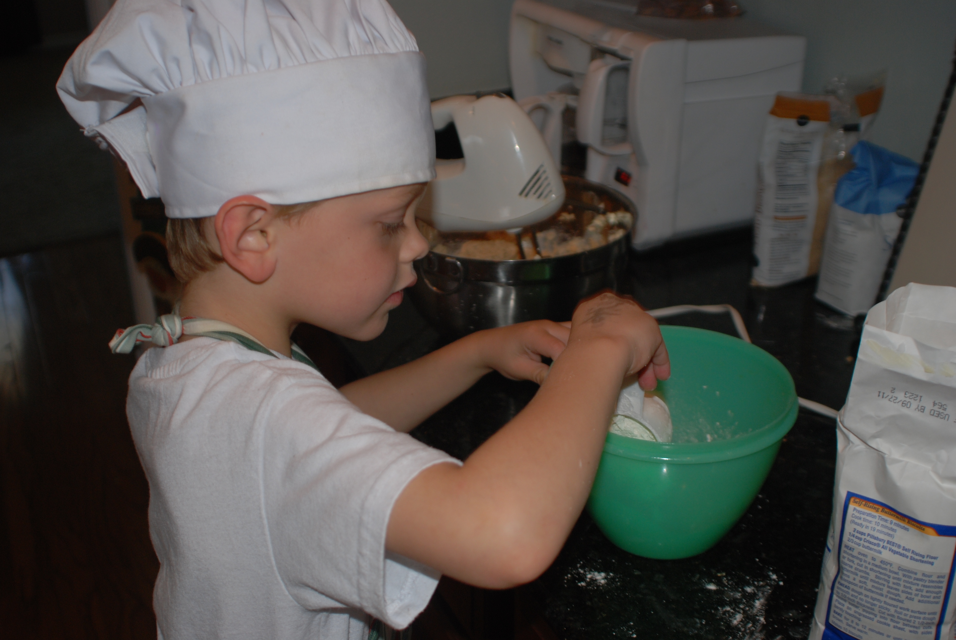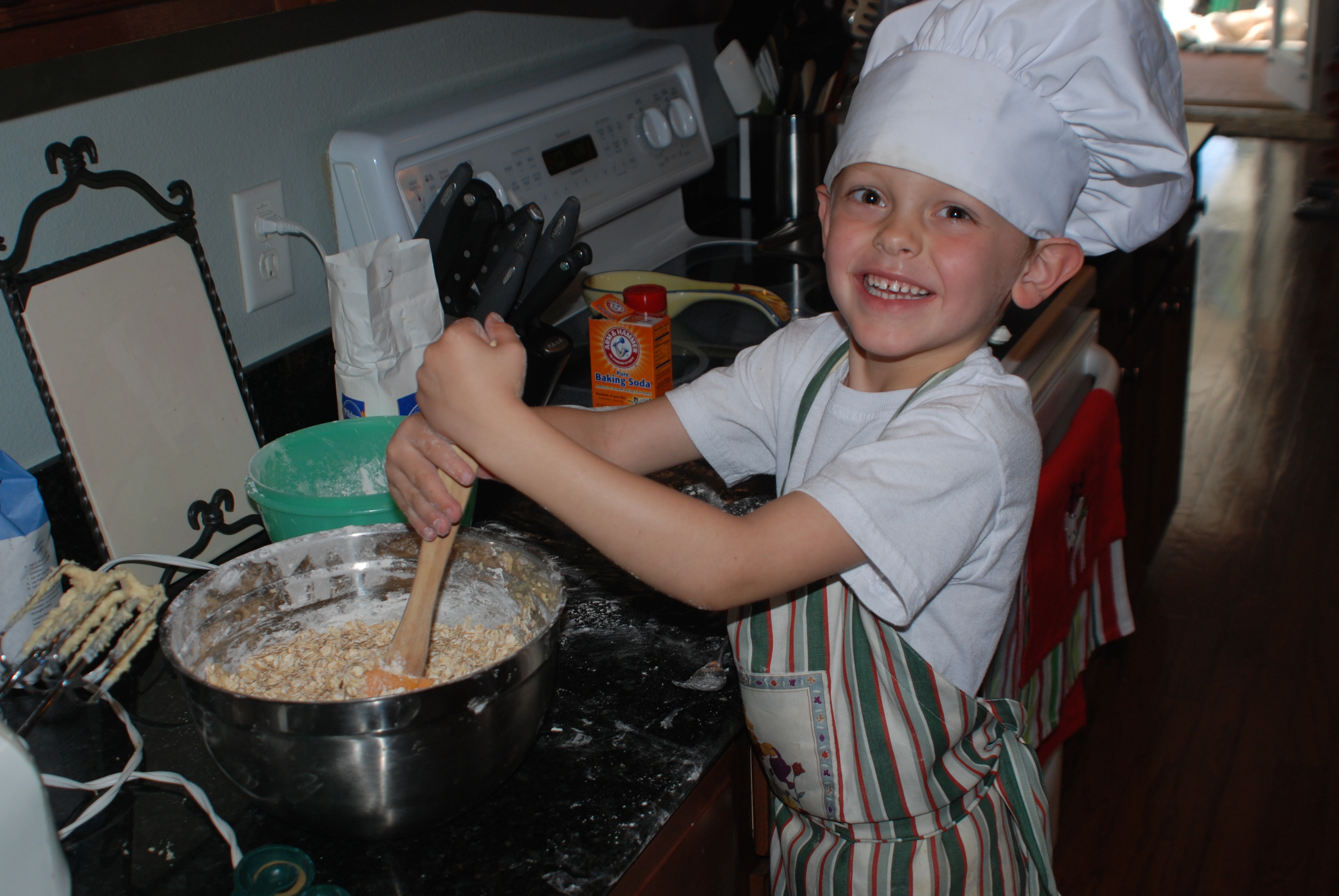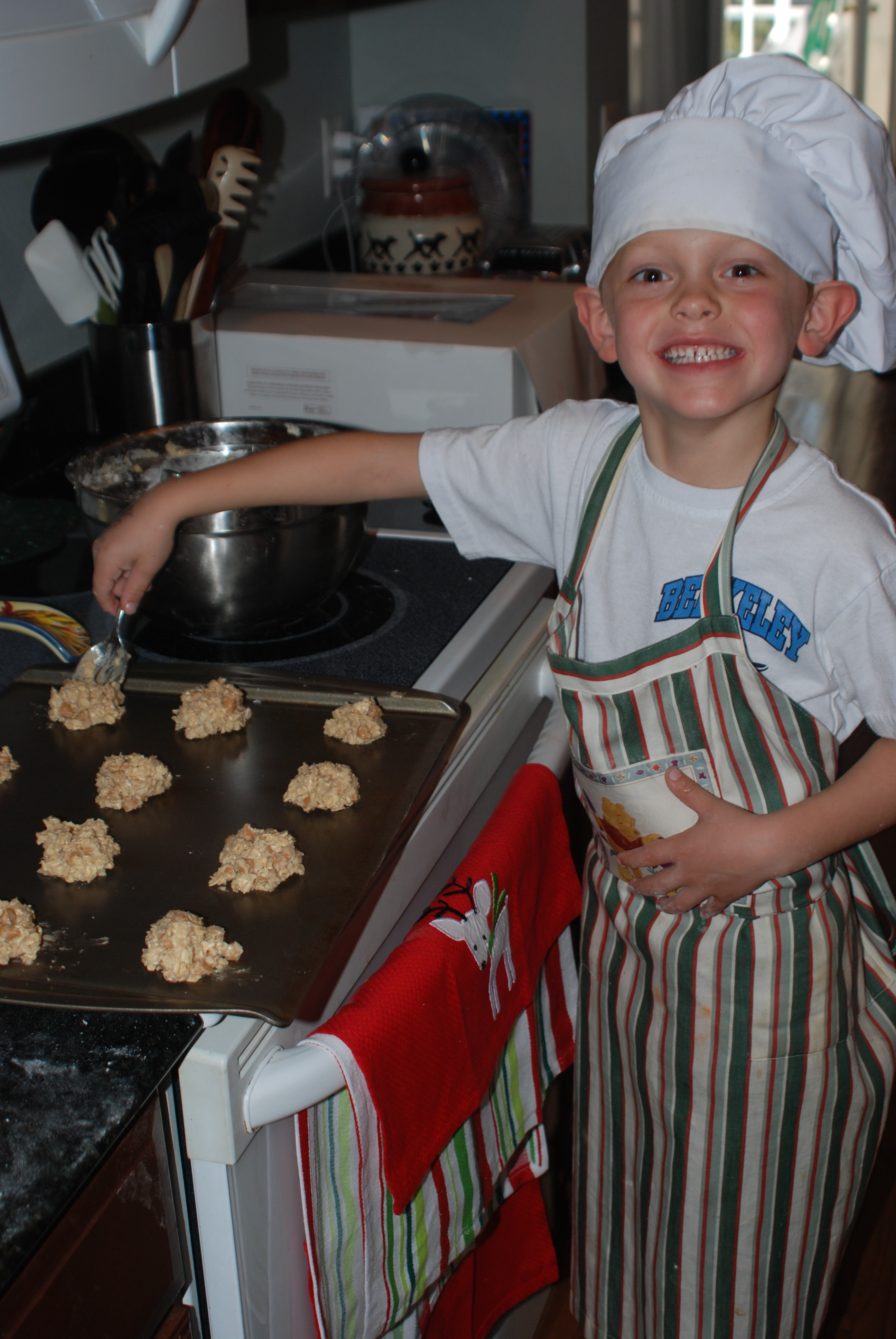 The request is for volunteers to bake six dozen cookies and to make anything other than chocolate chip. So, we decided to make Oatmeal Scotchies. Of course I had to enlist my little chef to help me, he loves to cook and this is a perfect way for him to say “Thank you” to Mrs. Fruit, Ms. Michiel’s, and his other teachers….