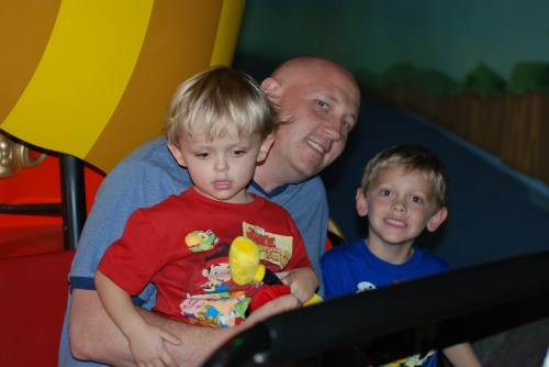 This tent that we were using was a 4-6 man tent. It wasn’t large, but it wasn’t too small either. It was 55 degrees, almost a little to chilly, so we each wore our pullover jackets and snuggled down under the blankets. It was Andy, me, Matty, and Davy. At 12:45, Matty sits up and starts projectile vomiting across this little tent. All over himself, me, the blankets, his stuffed animals, pillows, just everything. Instantly, we all wake up and move out-of-the-way. So gross. To top it all off we are in the middle of 100 other tents and it is soooo quiet out. So, as the stench takes over, I start pushing Andy to get out of the tent and get some towels to help me clean this up. He opens the tent and trips trying to get out ripping the whole bottom of the tent so now it won’t close. He stumbles into one of our beach chairs to catch himself and breaks the chair. Oh my…