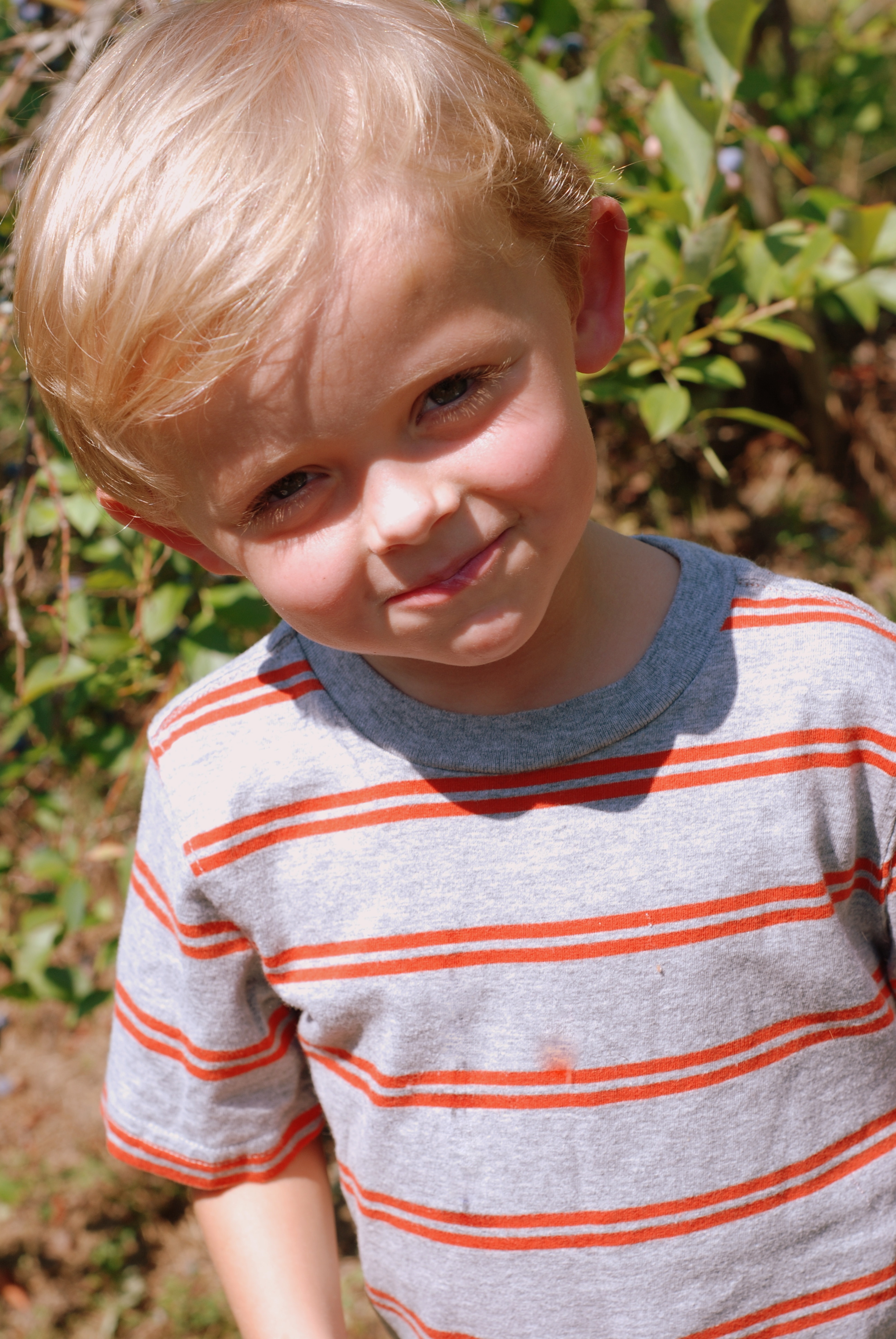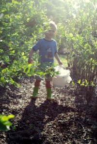 I have decided that for Easter we need blueberry muffins. It is officially blueberry picking season, so I load the boys up in the truck and take them over to Blue Youth Berry Farms. The berries are huge this year and I know that I had better pick a lot because Andy will be all in the bag trying to eat them once I bring them home :)…