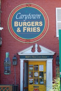 After we dropped off the berries at home, we met Brian at his office and followed him to lunch. He took us to Cary St. Carytown is located in a trendy part of midtown, in Richmond. It is not a formal township, but it is formally recognized as a superior shopping district. Over 200 businesses, and some residents call this historic outdoor shopping mall home. Brian swore that if we went to Carytown we’d have one of the best hamburgers ever.