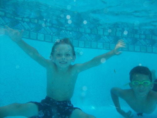 After quiet time, the kids went for a swim. Kelly dug out a waterproof camera that the boys had received for Christmas and needless to say, the camera provided them with a long time form of entertainment. The pictures turned out cute too.