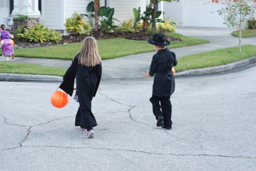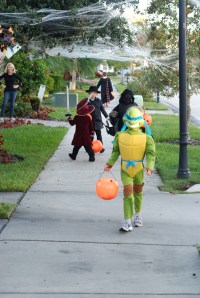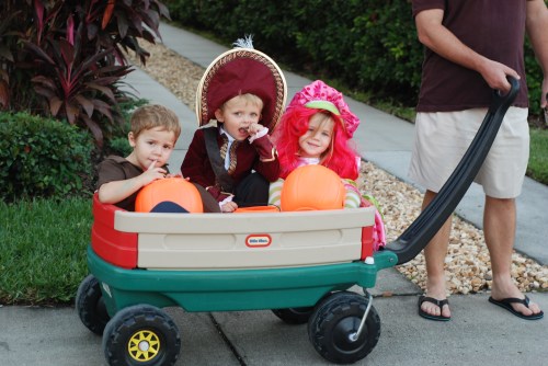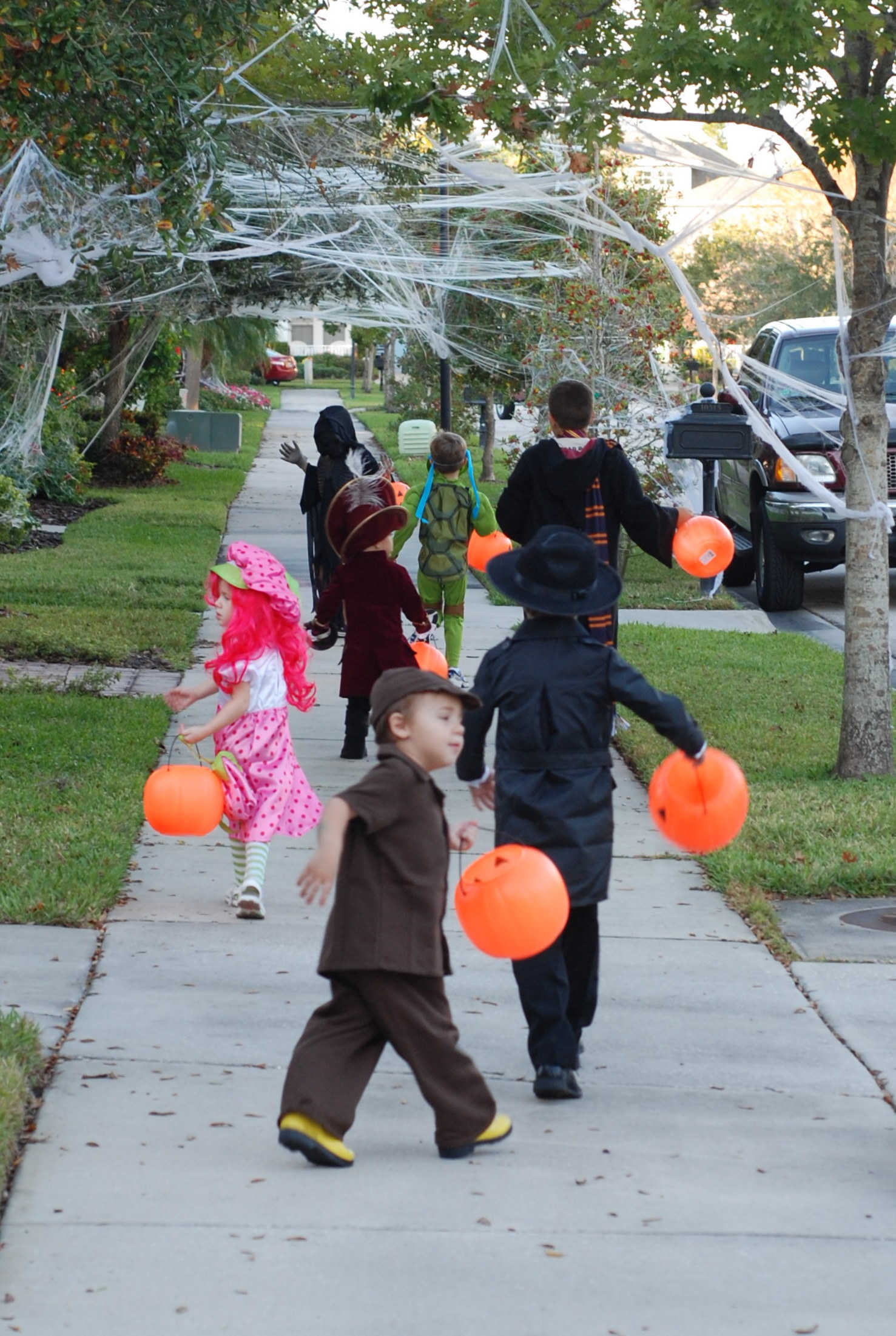 I love this photo because although there are so many different things that the children could be carrying to collect their candy in, they all seem to still want to carry the orange pumpkin.