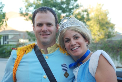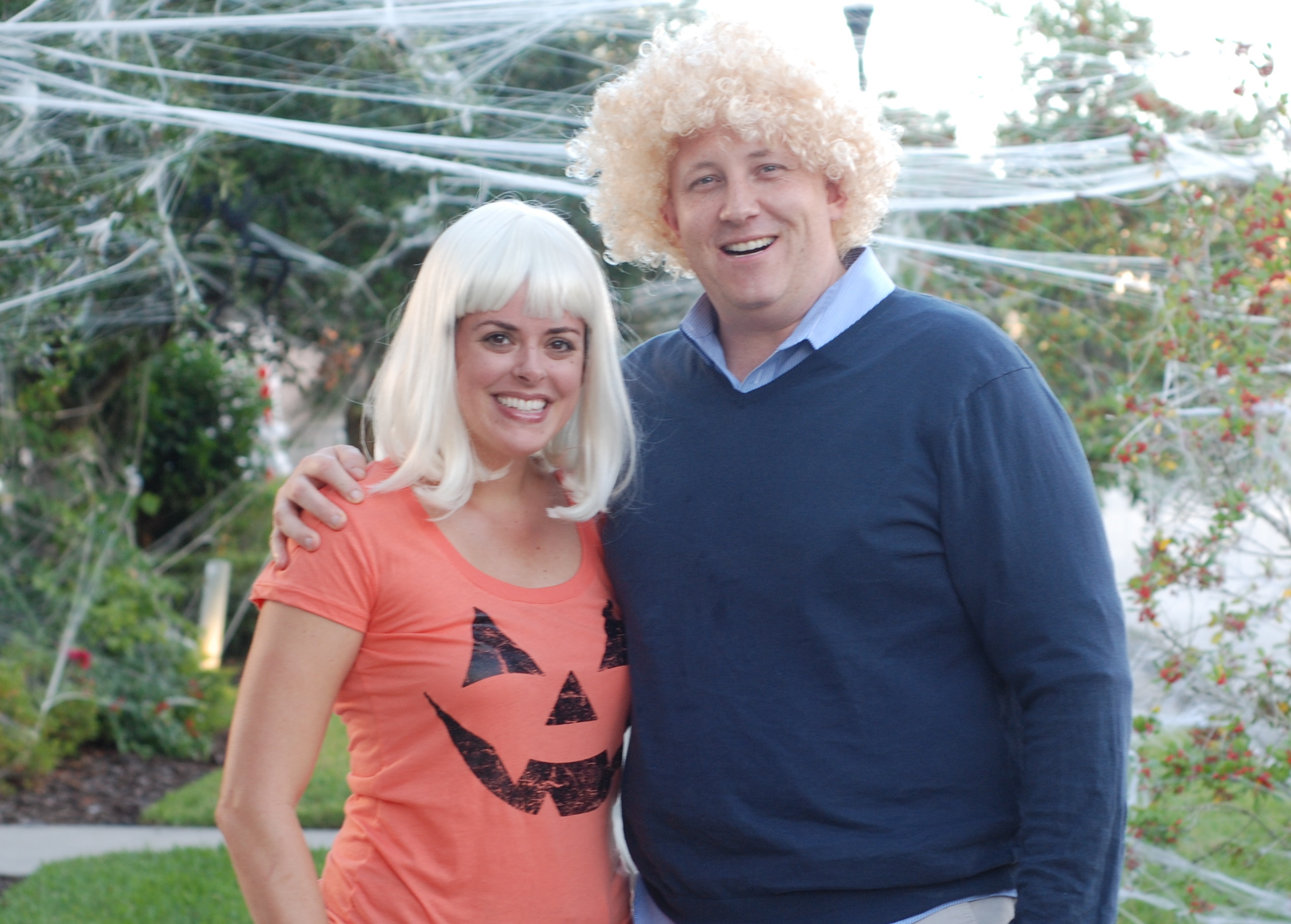 Emma is dressed up like Strawberry Shortcake and Jack is the UPS Man.