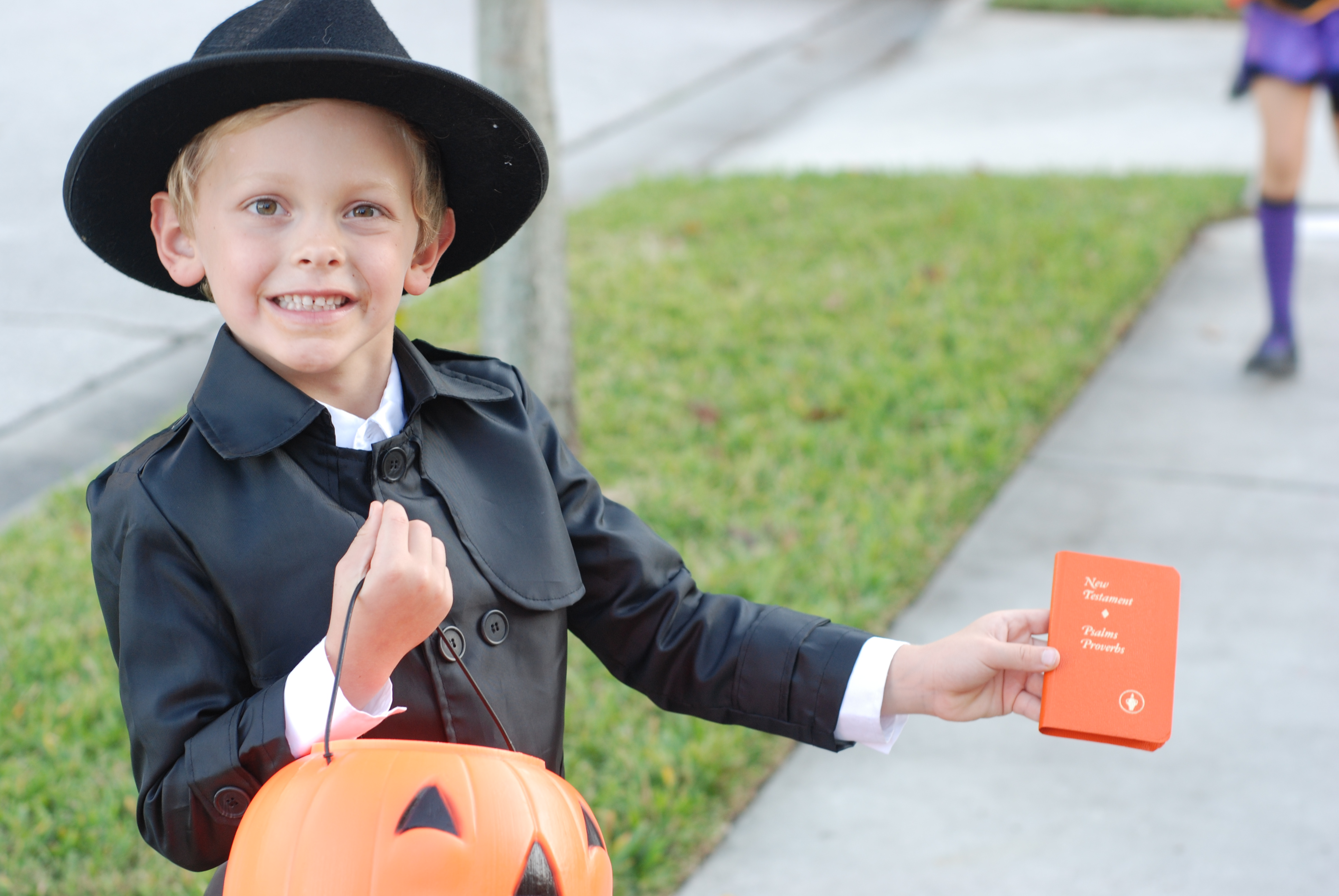 Grandpa Barnhart was handing out little bibles and Grandma Barnhart was handing out the candy!