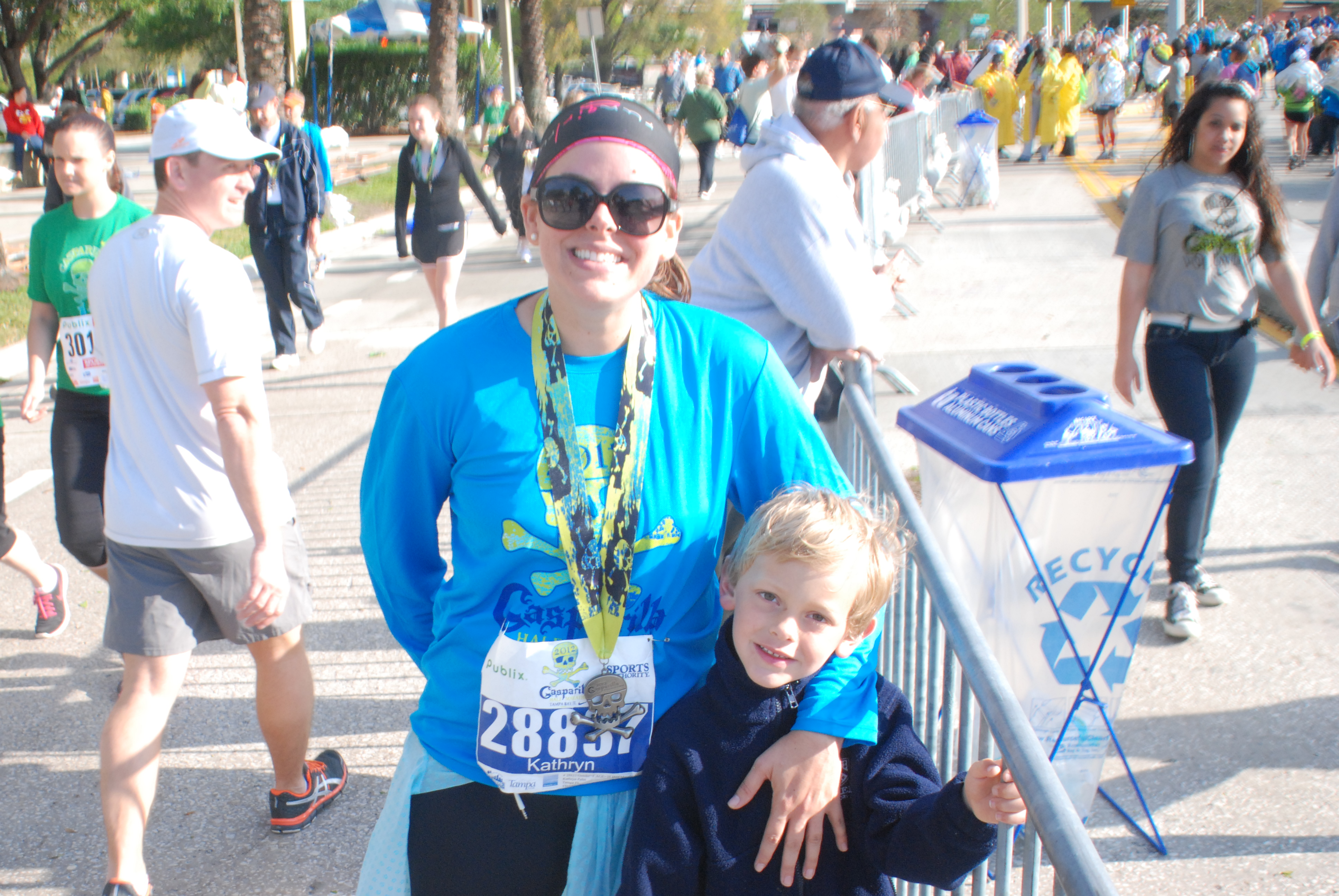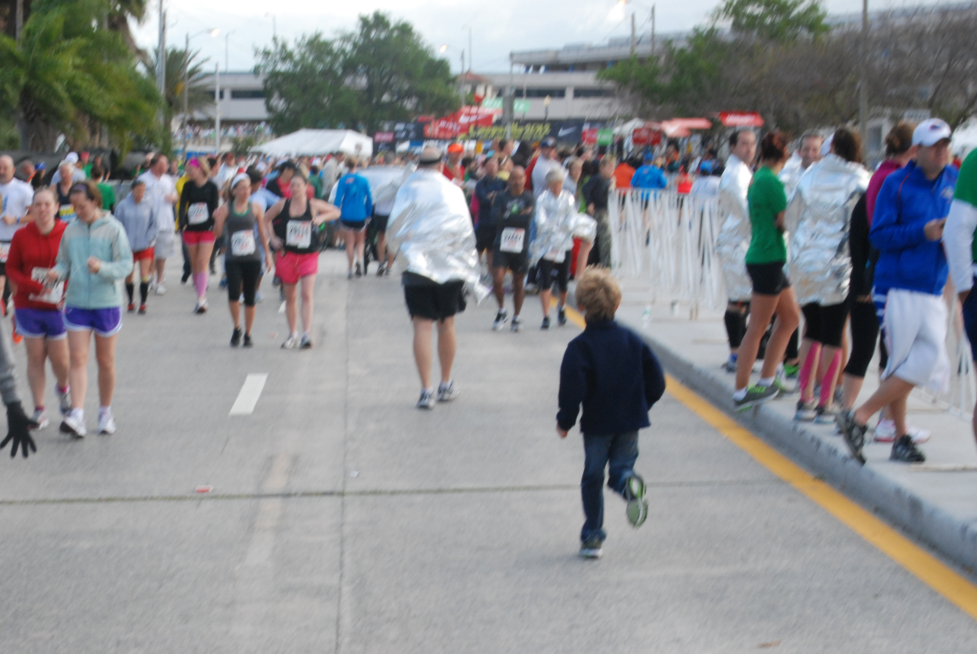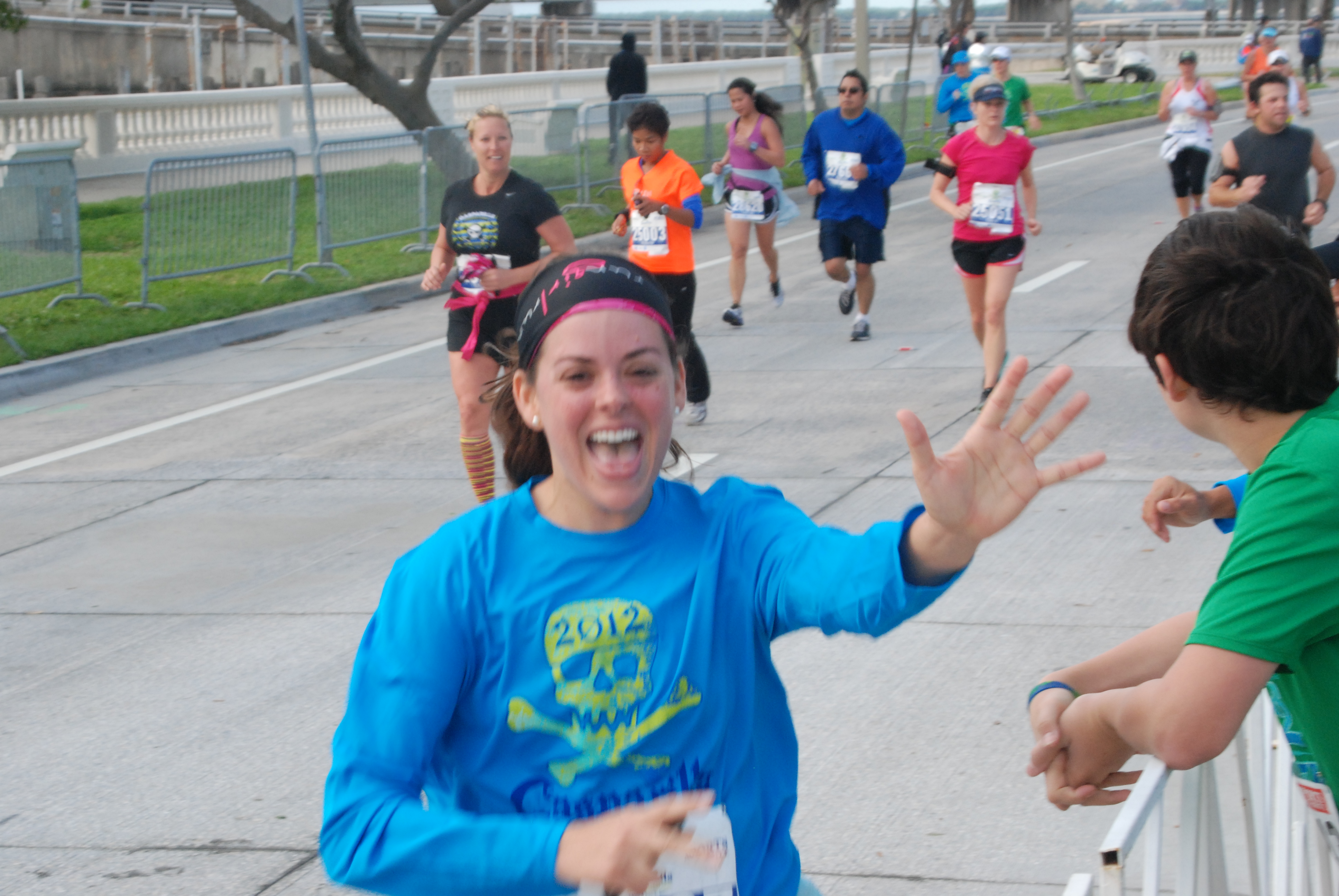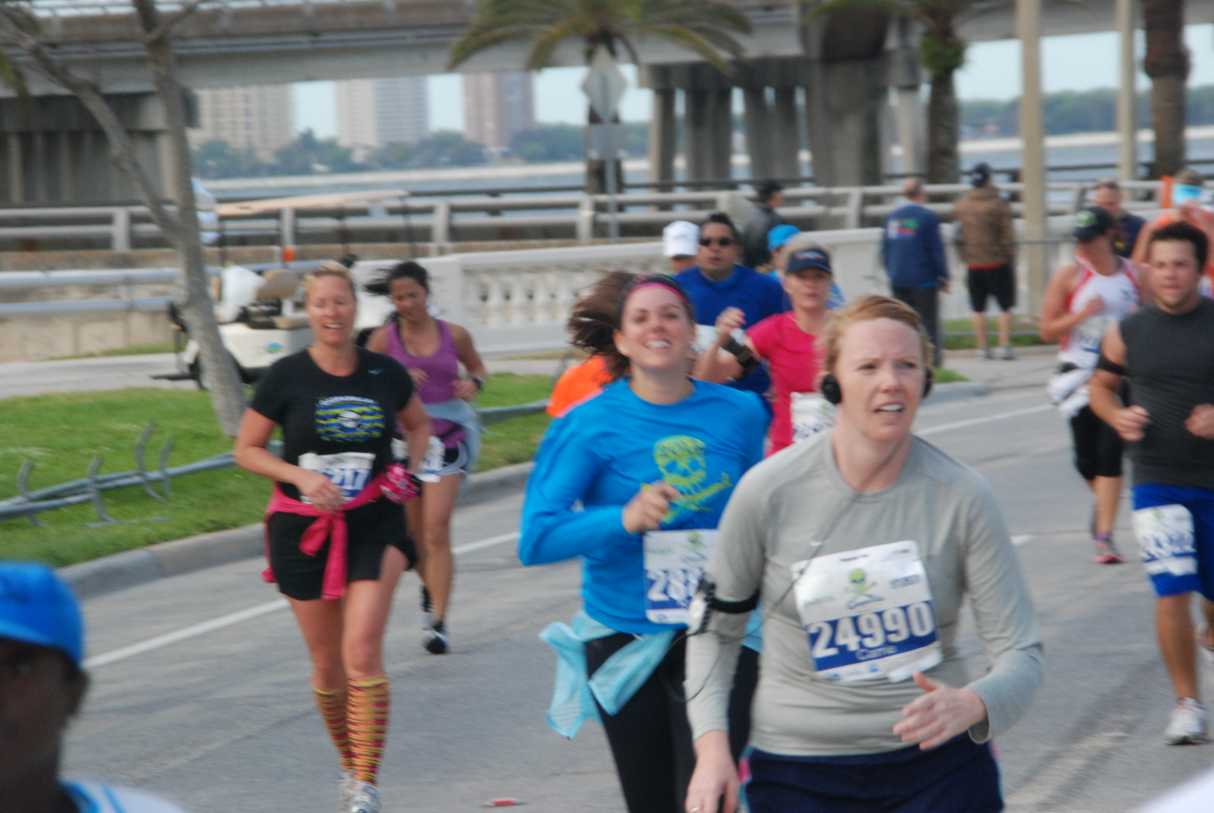 We lined up in the second wave and then we were off. We knew that going over the Davis Islands bridge was going to be congested, but this year it went at a snail’s pace, and I am certain it affected my overall time. Kelly and I ran together until mile 5ish and then from mile 7-9 I ran with Tracy. Andy and the boys posted up at the finish line when I was around mile 8, and for the rest of the run Andy and I text back and forth so we would both know the whereabouts of each other. Miles 10-13 were the windiest of the run, I can’t help but wonder how I would have done if there had been no wind…