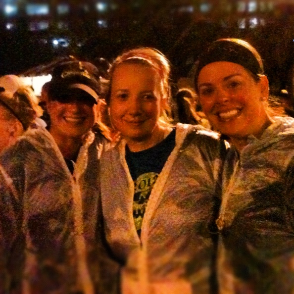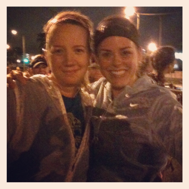 Kim and Kelly arrived right at 4:30, we took a couple of photos and then hopped in Kim’s car to pick up the other girls carpooling down. By the time we reached the parking garage outside of the convention center it was pouring and the wind was ferocious. We stayed in the garage and out of the rain until the last-minute possible. As we headed down the stairs, the rain stopped. We had no idea if it was going to return or not, but we were thankful for the dry spell. As luck would have it, the rain had moved on and we stayed dry. We felt horrible for all of those who got soaked and then had to run in the wind.