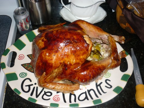 Mom and Granny arrived at noon, we heated up some of the food, and it was time to eat. This was my first time making a holiday turkey and I was quite proud of the way it turned out. It was a roasted turkey with cider-rosemary gravy. Dad carved it up and I thought it was delicious.